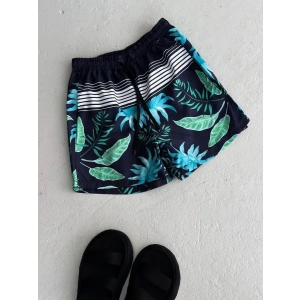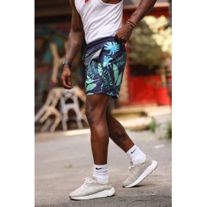 Erkek Palmiye Desenli Deniz Cepli Şort - Mavi
