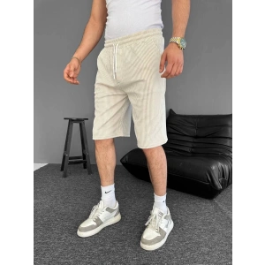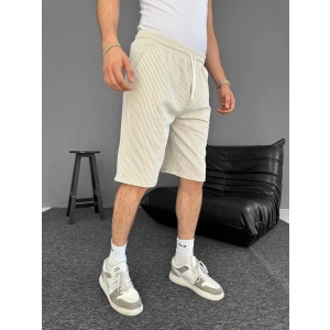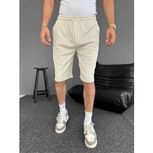 Su Yolu Çizgili Ön Arka Cepli Şort Yazlık Nefes Alabilir - Bej