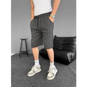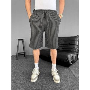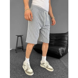 Su Yolu Çizgili Ön Arka Cepli Şort Yazlık Nefes Alabilir - Gri