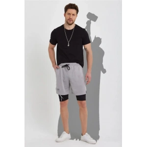 Unisex Baskılı İç Cepli Sporcu Alt Taytlı Şort - Gri