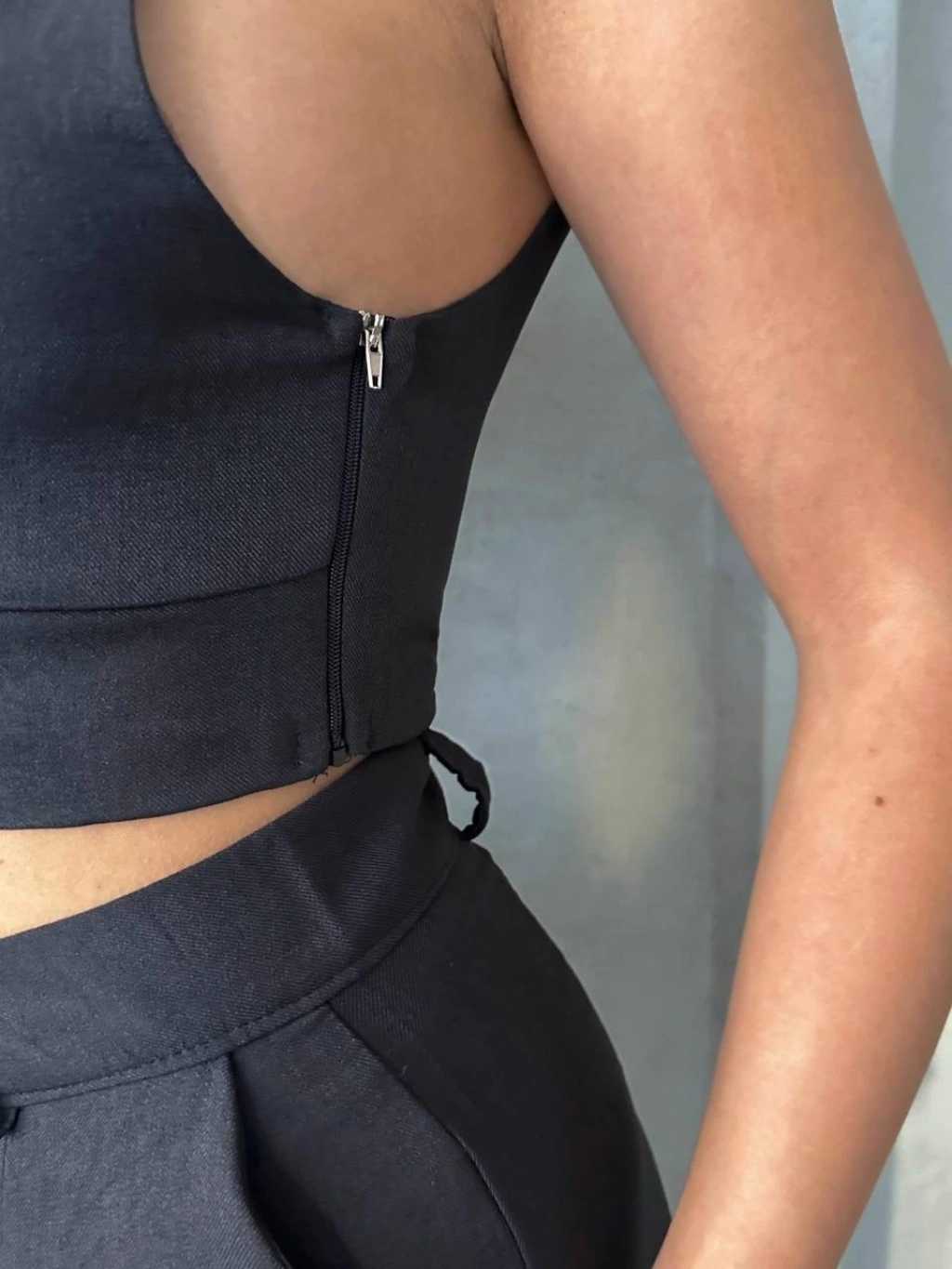 Keten yelek pantolon takım indigo pt
