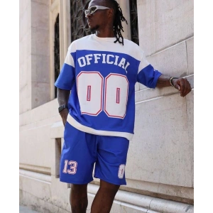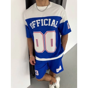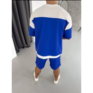 Erkek Şortlu Takım – Oversize İki İplik Kumaş, Ön & Arka Dijital Baskılı Tişört ve Lastikli Cepli Şort, Yazlık Günlük Spor Set - Mavi