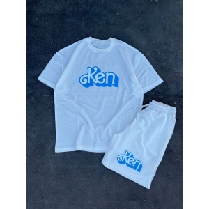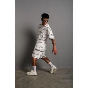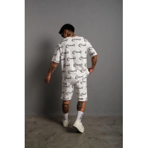 Erkek Baskılı İkili Şortlu Takım - Beyaz