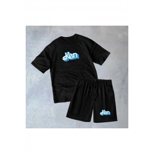 Erkek Baskılı İkili Şort Takım - Siyah