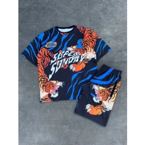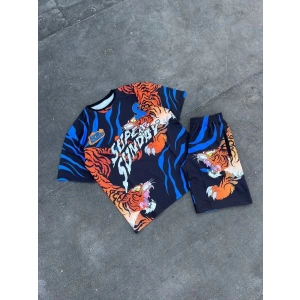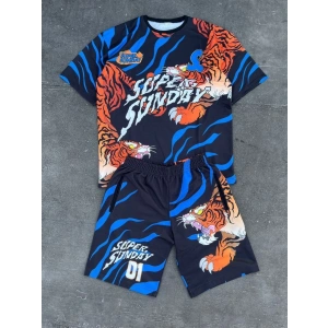 Erkek Dijital Baskılı Şortlu Takım - Mavi