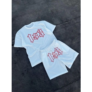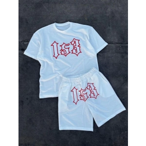 Erkek Nakış İşlemeli Şortlu Takım - Beyaz