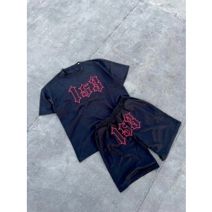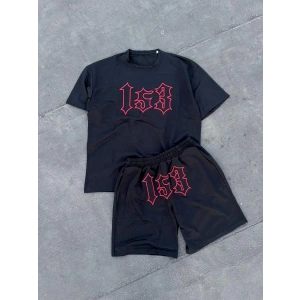 Erkek Nakış İşlemeli Şortlu Takım - Siyah