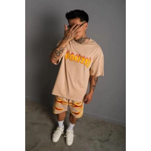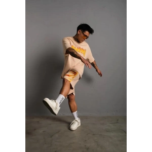 Erkek Alev Baskılı İkili Şortlu Takım - Bej