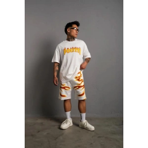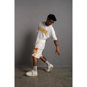 Erkek Alev Baskılı İkili Şortlu Takım - Beyaz