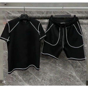 Unisex Karoyaka Dikişli Şortlu Takım - Siyah