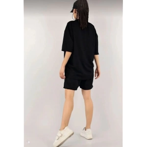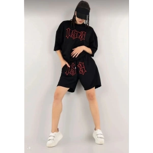 Kadın Unisex Nakış İşlemeli Şort Takım - Siyah