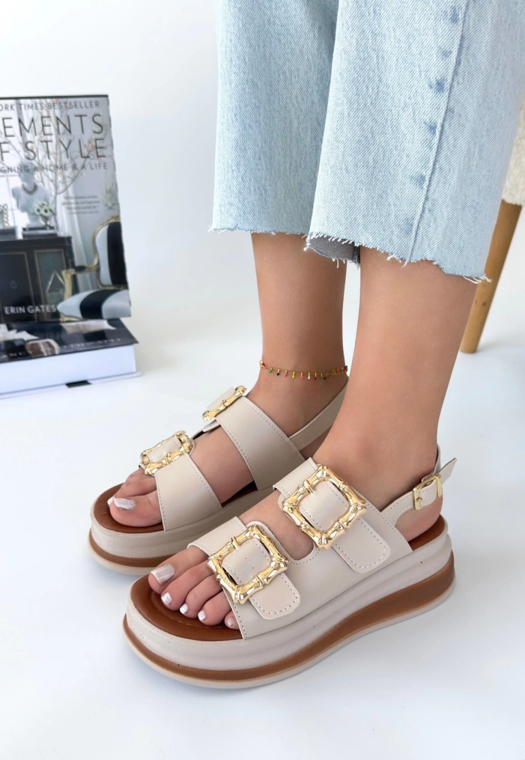 Detay : Tokalı Kemerli Ortapedik Sandalet
