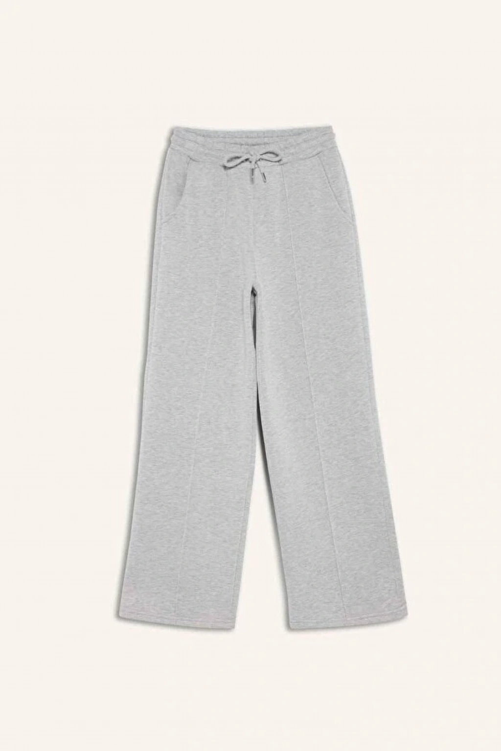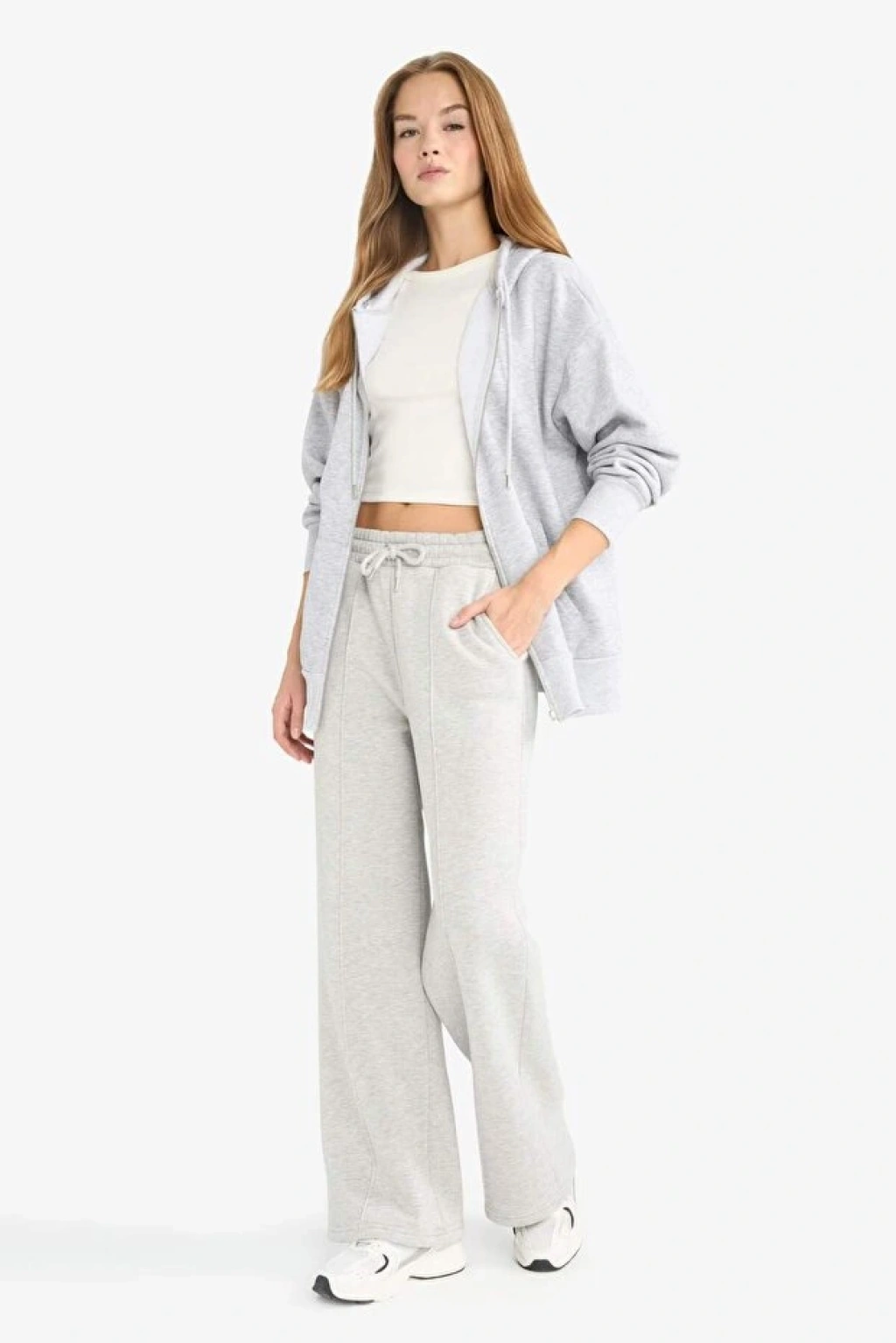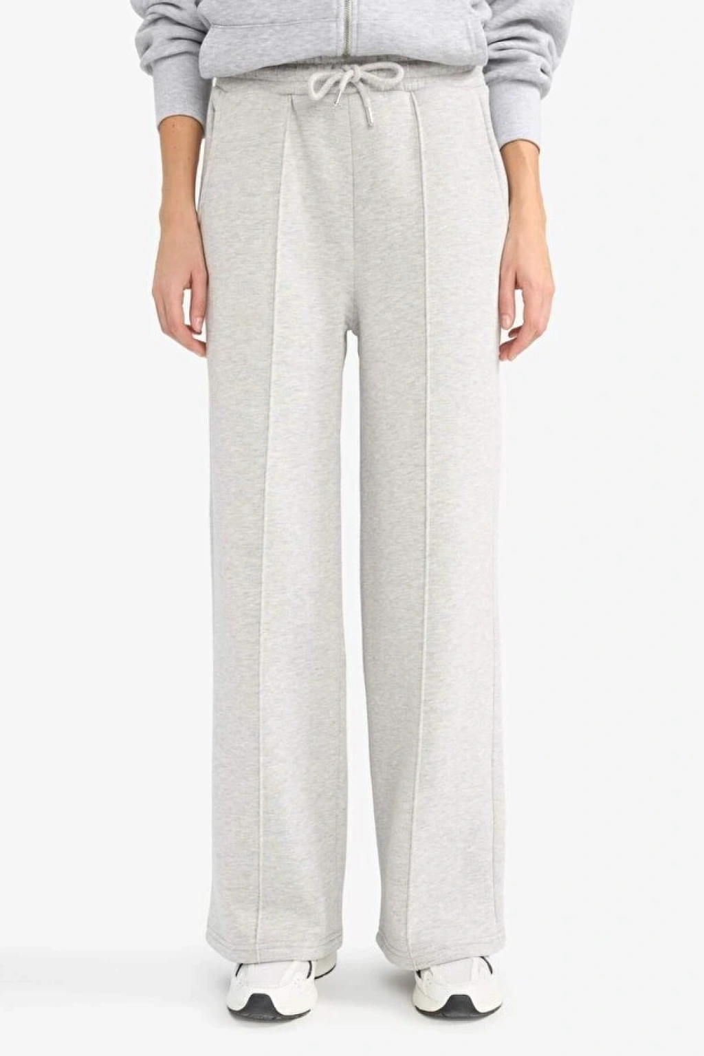 Straight Fit Beli Lastikli Kalın Eşofman Altı Bağcıklı Cepli Uzun Boy Basic Düz