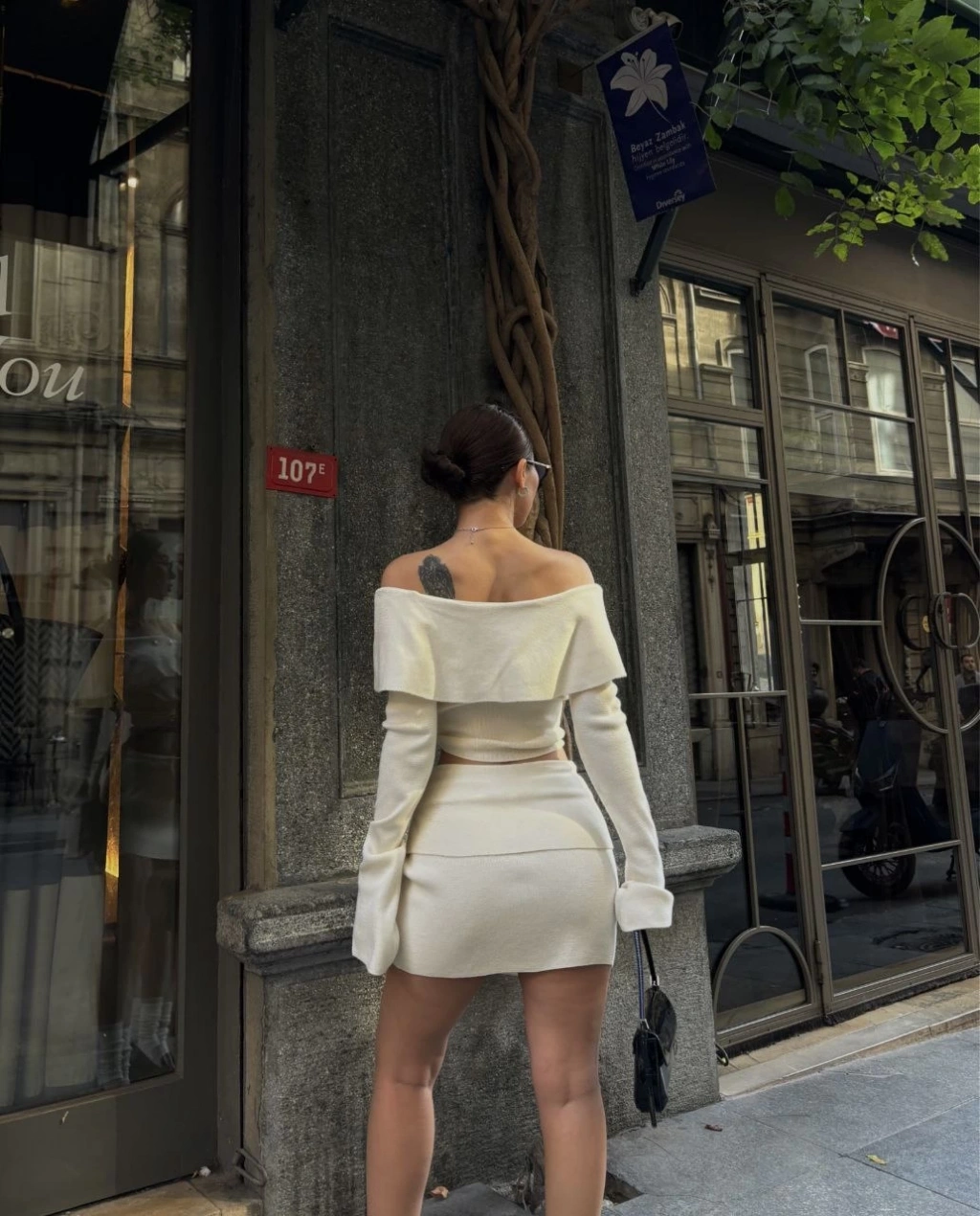 OSY MODAL YUMUŞAK DOKULU KUMAŞ KADIN PARÇALI BİSİKLET YAKA T-SHİRT MİNİ ŞORTLU ETEK İKİLİ TAKIM - FÜME