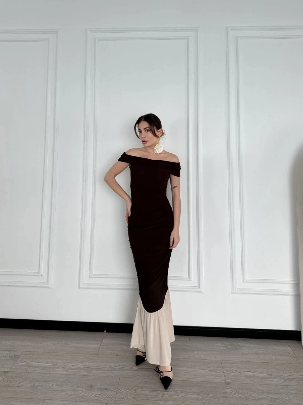 Modelin üzerindeki ürün S / 36 bedendir.