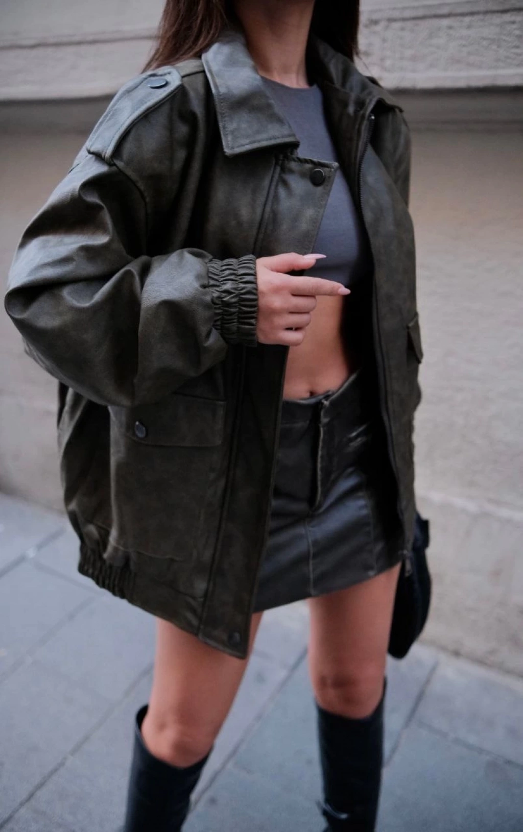 Kadın Kolej Ceket – Kareli Oduncu Kumaş, Kolları Suni Deri, Fermuarlı, İçi Kapitone Astarlı, Nakışlı Oversize Bahar & Kış Stil - Haki