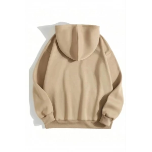 3 İplik Pamuklu Unisex Kapşonlu Sweetshirt - Bej