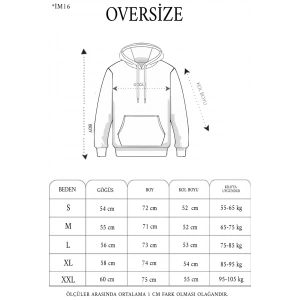 Unisex Sırt Baskılı Kapüşonlu Üç İplik Oversize Sweatshirt - Siyah