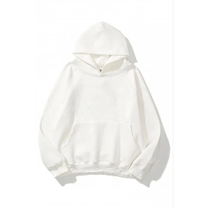 3 İplik Pamuklu Unisex Kapşonlu Sweetshirt - Beyaz
