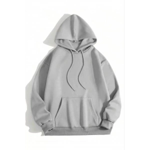 3 İplik Pamuklu Unisex Kapşonlu Sweetshirt - Gri