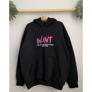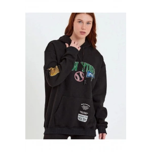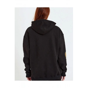 Kadın Baskılı Kapüşonlu Sweatshirt - Siyah