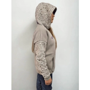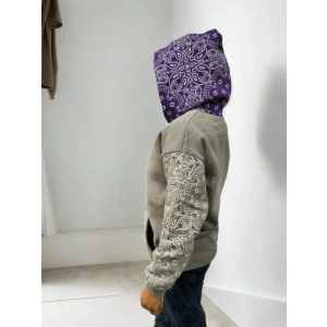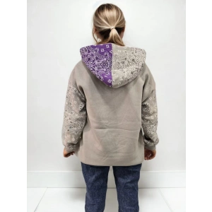 Kadın Baskılı Kapüşonlu Sweatshirt - Gri