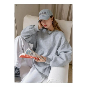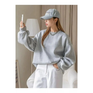Kadın Düz Bisiklet Yaka Sweat - Gri