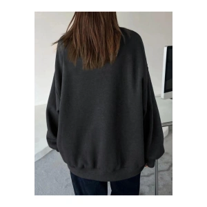 Kadın Düz Bisiklet Yaka Sweat - Siyah