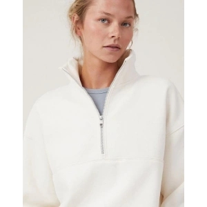 Oversize Yarım Farmuarlı Yakalı Basic SweatShirt - Beyaz