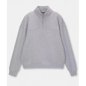 Oversize Yarım Farmuarlı Yakalı Basic SweatShirt - Gri