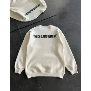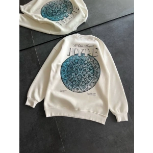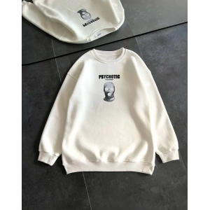 OVERSİZE ÜÇ İPLİK BİSİKLET YAKA BASKILI SWEATSHİRT - BEYAZ