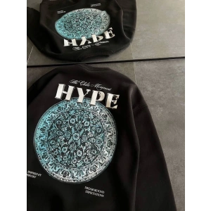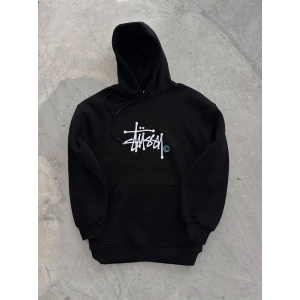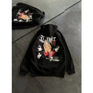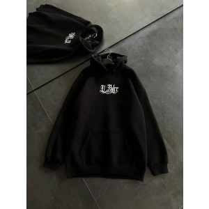 ÜÇ İPLİK PENYE UZUN KOL KAPŞONLU BASKILI SWEATSHİRT - SİYAH