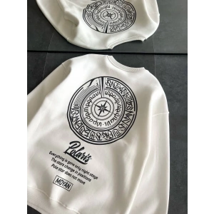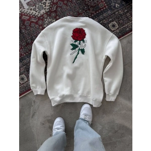 KIŞLIK BİSİKLET YAKA ÖN VE ARKA BASKILI SWEATSHİRT - BEYAZ
