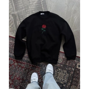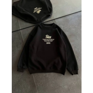 OVERSİZE ÜÇ İPLİK BİSİKLET YAKA BASKILI SWEATSHİRT - SİYAH
