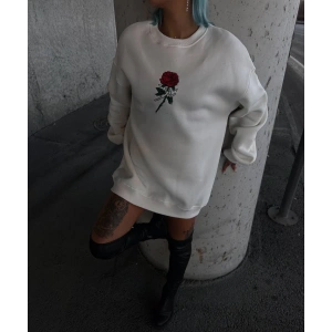 KIŞLIK BİSİKLET YAKA OVERSİZE BASKILI SWEATSHİRT - BEYAZ