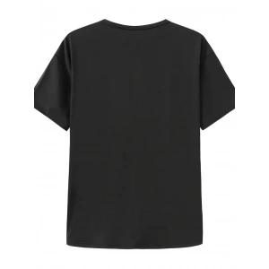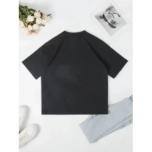 CANLI HARF BASKILI BÜYÜK BOY OVERSİZE KISA KOLLU TİŞÖRT - YUMUŞAK, NEFES ALABİLİR, KADINLAR İÇİN RAHAT YAZ VE İLKBAHARIN VAZGEÇİLMEZİ - RAHAT KESİM, RAHAT, ŞIK KADIN GİYSİLERİ - SİYAH