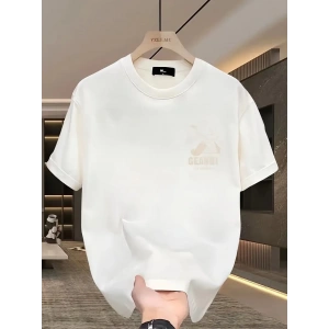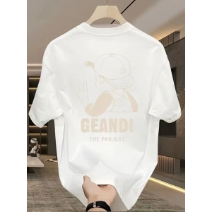 RAHAT BİSİKLET YAKA TİŞÖRT, YARATICI KARİKATÜR BASKI - YUMUŞAK POLYESTER, HER MEVSİM GİYİLEBİLİR- BEYAZ