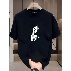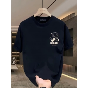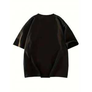 RAHAT BİSİKLET YAKA TİŞÖRT, YARATICI KARİKATÜR BASKI - YUMUŞAK POLYESTER, HER MEVSİM GİYİLEBİLİR- SİYAH