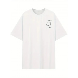 [GÜNLÜK T-SHİRT] HAFİF KADIN GÜNLÜK T-SHİRT | BOL KESİM, KISA KOLLU, YUVARLAK YAKA, EĞLENCELİ KARİKATÜR AYI VE "UMRUMDA DEĞİL" BASKI - GÜNLÜK STİL, İLKBAHAR/YAZ- BEYAZ