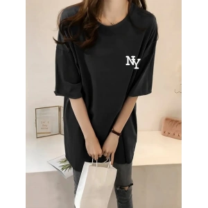 KADIN EĞLENCELİ HARF NY BASKILI BİSİKLET YAKA TİŞÖRT - RAHAT POLYESTER, MAKİNEDE YIKANABİLİR - YAZ VE FİTNESS İÇİN MÜKEMMEL, YUVARLAK YAKA - SİYAH