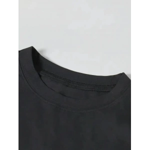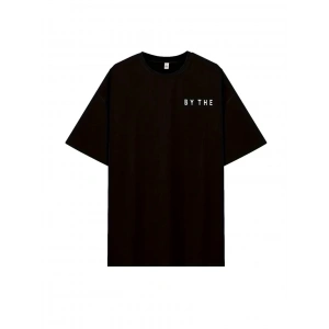 NEWTRO BASKILI OVERSİZE BİSİKLET YAKA T-SHİRT - SİYAH
