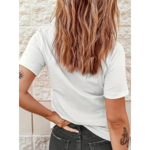 KADIN EĞLENCELİ HARF NY BASKILI BİSİKLET YAKA TİŞÖRT - RAHAT POLYESTER, MAKİNEDE YIKANABİLİR - YAZ VE FİTNESS İÇİN MÜKEMMEL, YUVARLAK YAKA- BEYAZ
