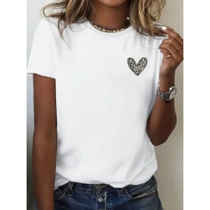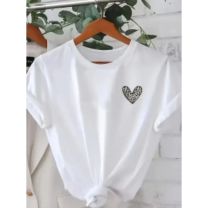 KADINLAR İÇİN ŞIK LEOPAR KALP BASKILI GÜNLÜK TİŞÖRT - BÜYÜK BEDEN, MAKİNEDE YIKANABİLİR, SEVGİLİLER GÜNÜ & GÜNLÜK KIYAFETLER İÇİN MÜKEMMEL- BEYAZ