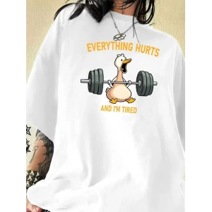 ÖRDEK BASKILI VE YUVARLAK YAKALI KADIN GÜNLÜK BÜYÜK BOY SİYAH TİŞÖRT. - BEYAZ