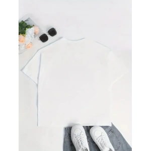 AICG ÖN ARKA BASKILI BİSİKLET YAKA KADIN OVERSİZE BİSİKLET YAKA T-SHİRT - BEYAZ