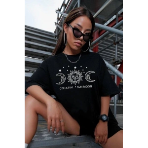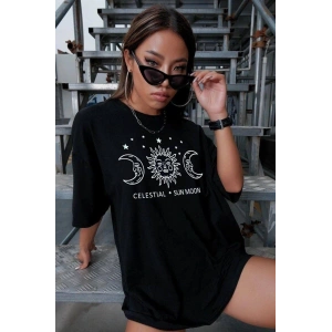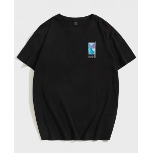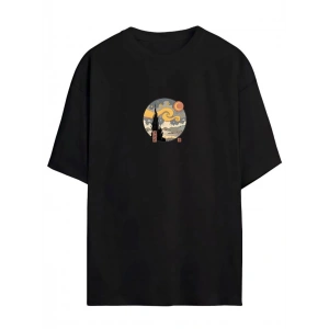 UNİSEX BASKILI OVERSİZE T-SHİRT - SİYAH