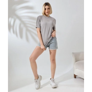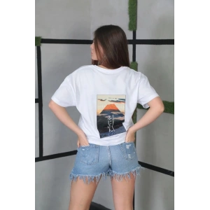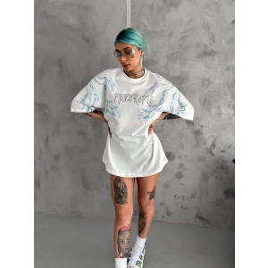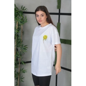 KADIN BİSİKLET YAKA BASKILI OVERSİZE T-SHİRT - BEYAZ