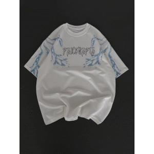 UNİSEX BASKILI OVERSİZE T-SHİRT - BEYAZ