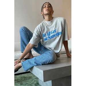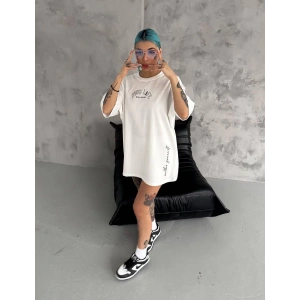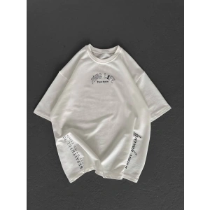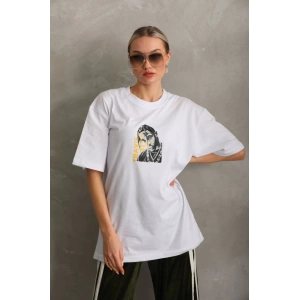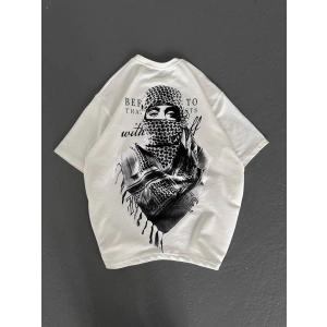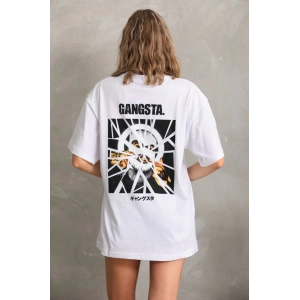 UNİSEX BASKILI OVERSİZE T-SHİRT - BEYAZ