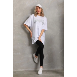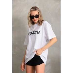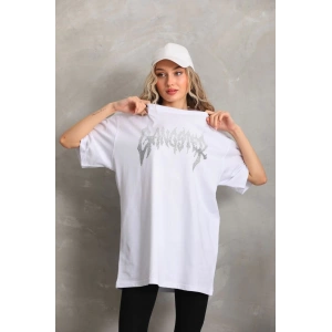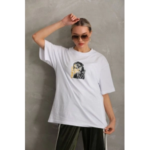 UNİSEX TAŞ DESENLİ OVERSİZE T-SHİRT - BEYAZ